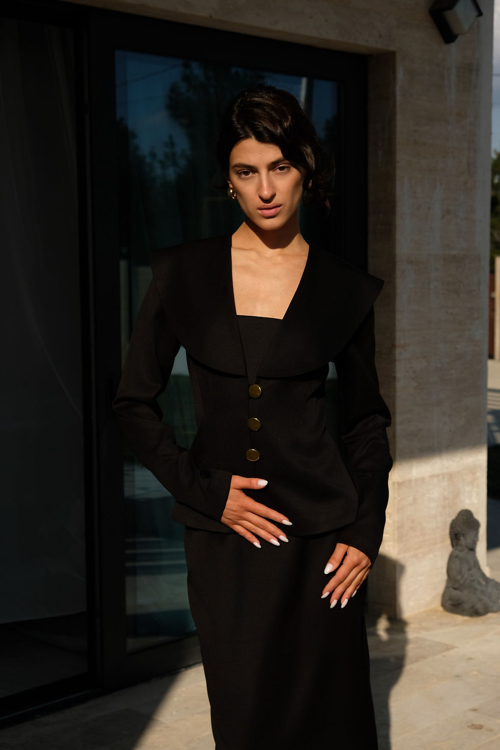 Pale Lemon set featuring a corset-inspired blazer and wide-leg trousers
